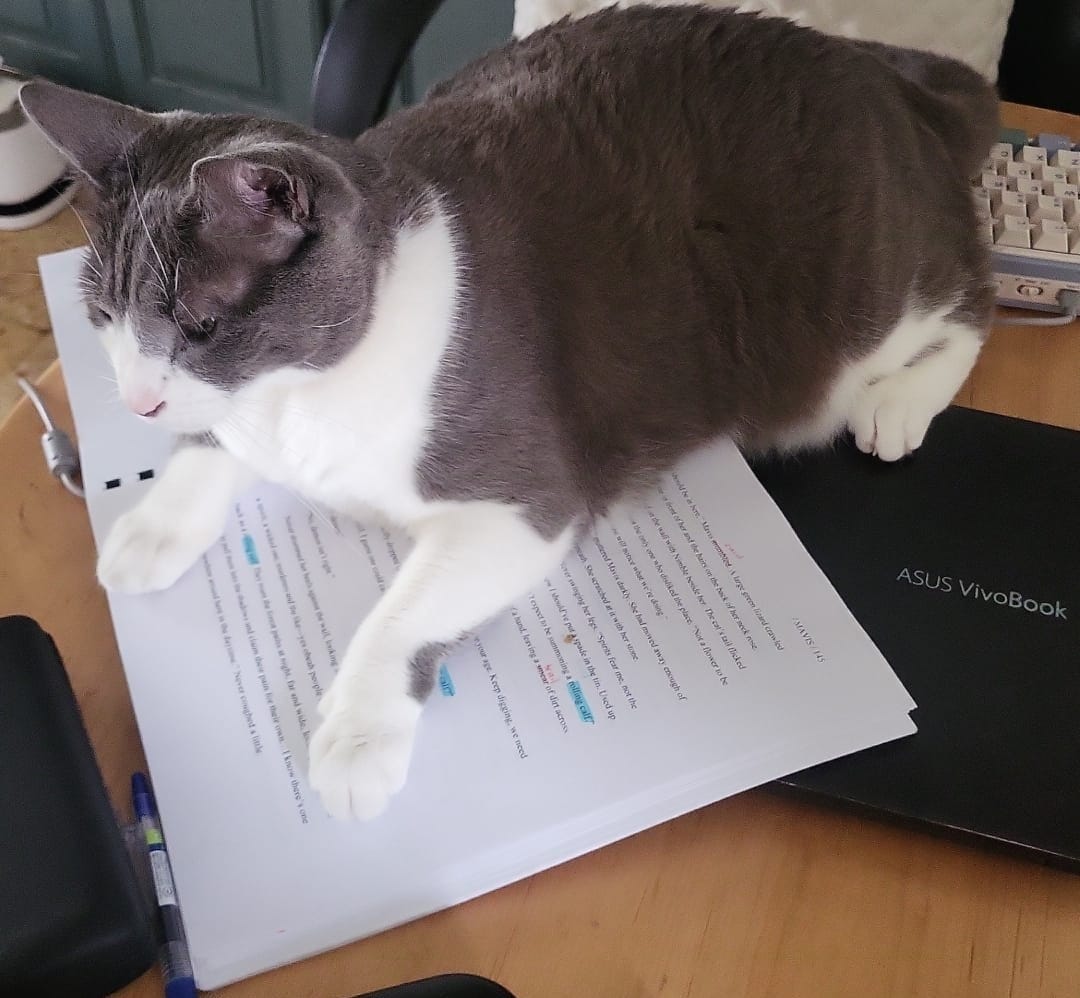 While the developmental stage is focused on big-picture issues, I couldn’t help but line-edit a bit as I went, though I allowed myself to shrug and say, ‘Well, that sentence feels wrong but I dunno how to fix it, so I’ll come back to it later’.